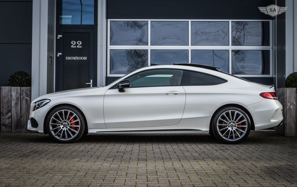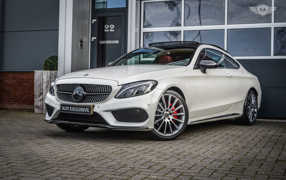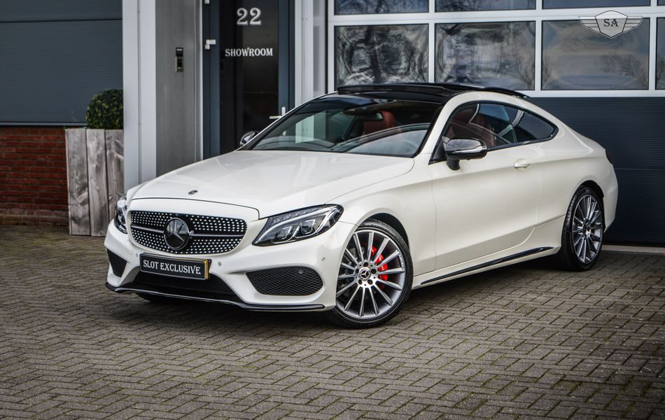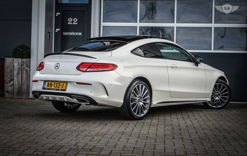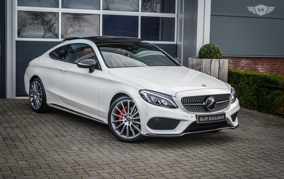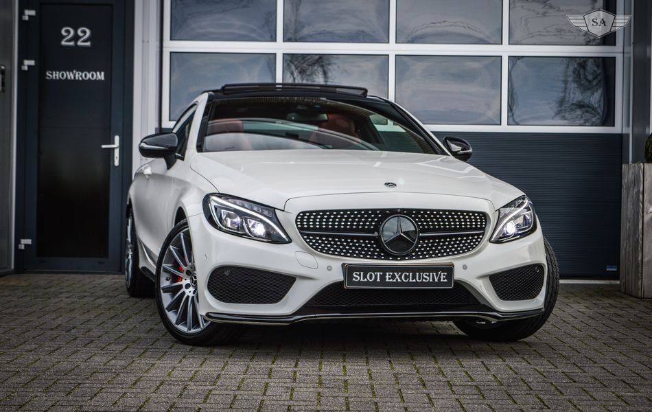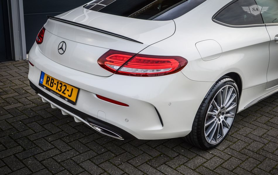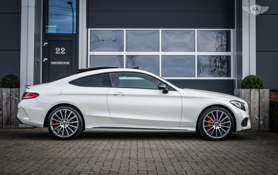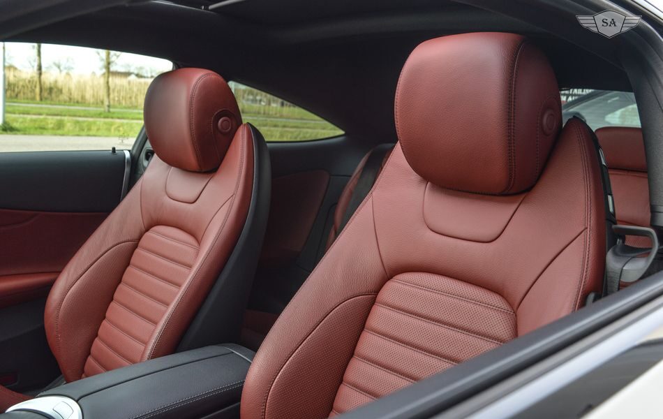 Mercedes-Benz C-Klasse Coupé 180 Premium Plus. Auto is een originele Nederlands geleverde auto en verkeerd in nette staat. Daarbij is deze auto prachtig samengesteld, door de parelmoer metallic lak en het chique bordeaux roderen lederen interieur.