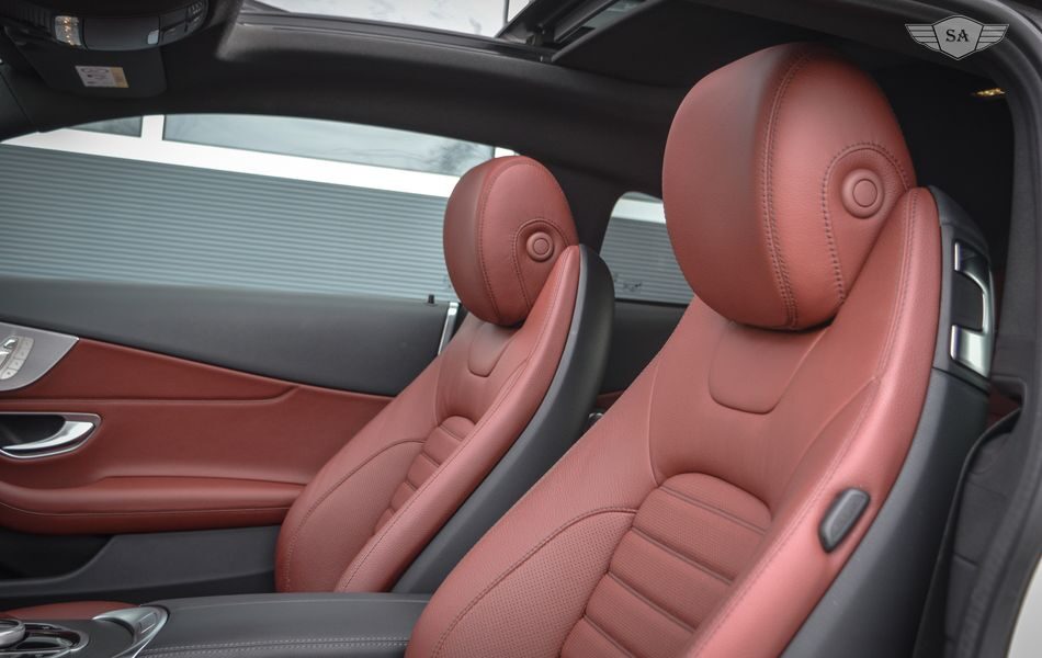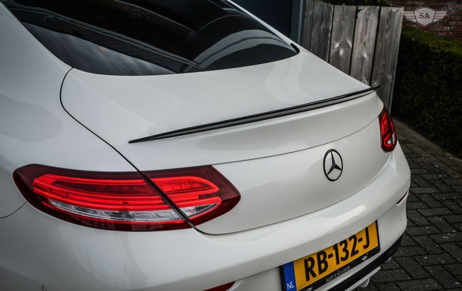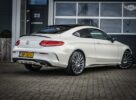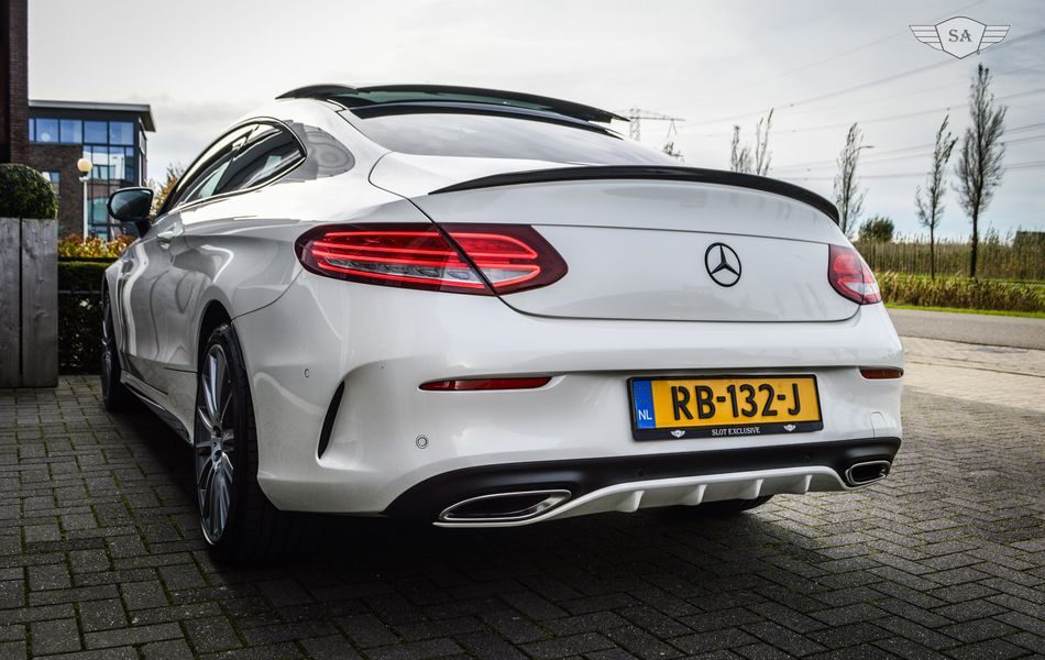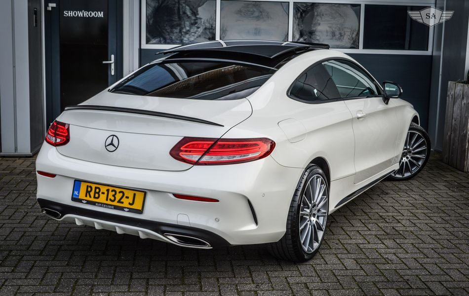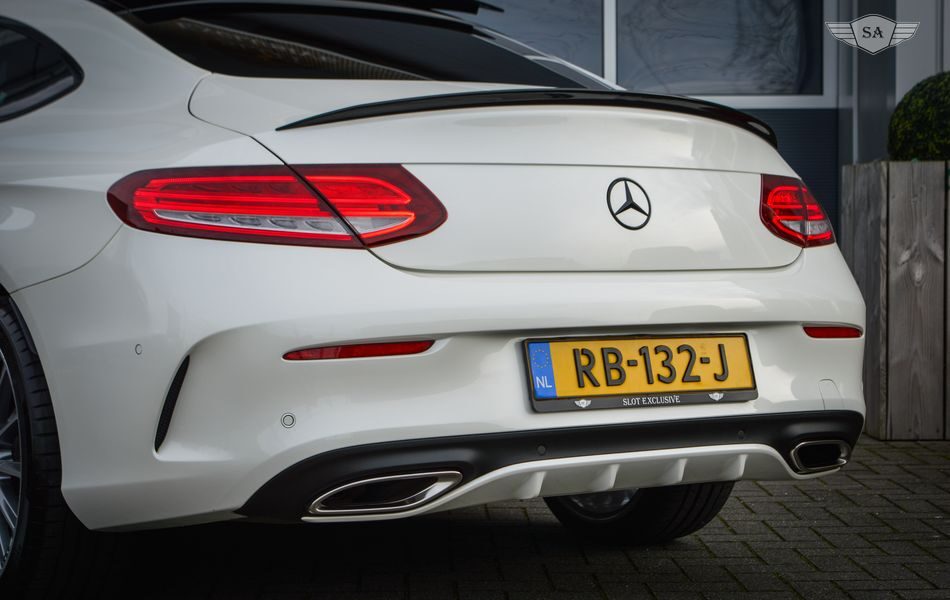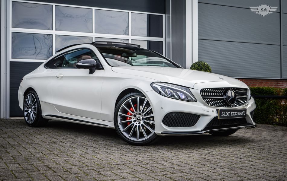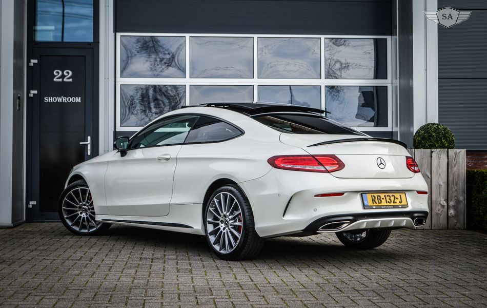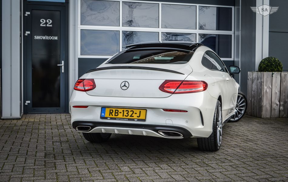 Mercedes-Benz C-Klasse Coupé 180 Premium Plus. Auto is een originele Nederlands geleverde auto en verkeerd in nette staat. Daarbij is deze auto prachtig samengesteld, door de parelmoer metallic lak en het chique bordeaux roderen lederen interieur.